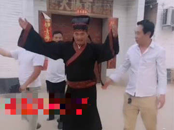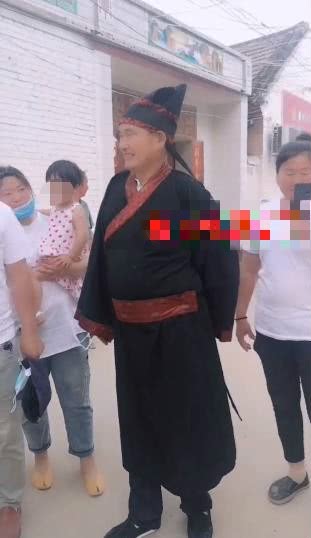 新浪娱乐讯 近日,一位村民分享了一段视频。画面中,为拍摄视频,大衣哥身穿黑色春秋战国时期直裾袍,双手合十,正非常恭敬有礼地向人行礼,场面十分热闹。