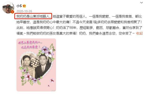 她也曾在该社交平台说过,她奶奶是山东郯城人,表明她的祖籍是山东的。