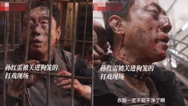 此前,他还因演戏需要戴着狗链被关在狗笼里,脸上化着特效妆,实在有些惨不忍睹。当时他还特意叮嘱助理衣服一定要不干净的,在被关进狗笼套上锁链时,工作人员为照顾孙红雷特意没有锁紧,而孙红雷听到后连忙拒绝,并让工作人员锁紧,对待演戏十分的严谨。