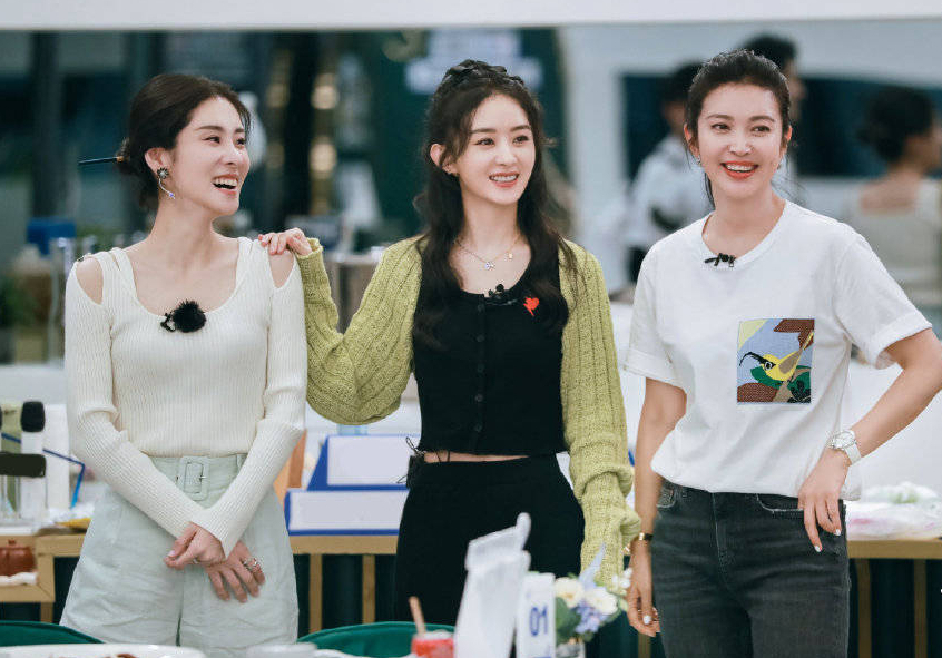 10日,赵丽颖录制《中餐厅》的一组照片曝光,她身穿黑色针织上衣外搭绿色小开衫,比赞甜笑状态佳。