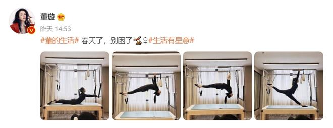 近日,著名演员董璇在自己的社交媒体上晒出多张健身照片,其高难度的动作引起了网友们的热议。