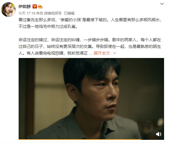 网易娱乐4月17日报道 4月17日,伊能静发长文老公谈秦昊的新剧《亲爱的小孩》,她表示这是最难下笔的一部剧,对剧中引起网友恐婚的场景解释道“正是因为如此婚姻才显出了爱的珍贵性”。伊能静透露了秦昊在拍这部戏时的一些感悟,也借秦昊的话回应了角色人物形象的争议,“演员不是来讨喜的,演员就是如实的去糊涂去挣扎,去爱去碰撞”,她还夸赞秦昊会把角色挖得更深,也夸赞了和秦昊一起搭档的任素汐、聂远、谢可寅以及老戏骨们的演技。最后,她号召观众在看完这部剧后能够珍惜身边人,多陪伴子女,可以懂得家人之间的界线。