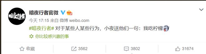 网易娱乐5月24日报道 电视剧《暗夜行者》官方发文回应李易峰多部作品被打低分一事,“对于某些人某些行为,小夜送他们一句:我吃柠檬”,似另有暗示。