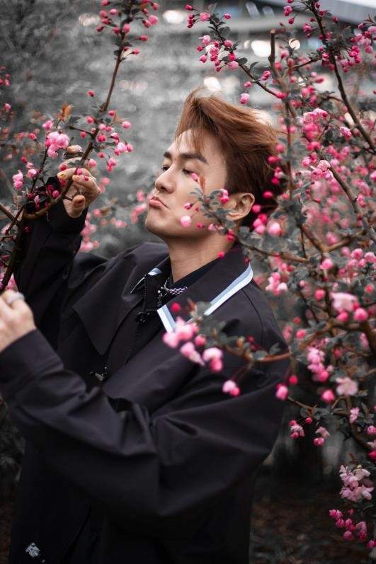 图中吴克群站在明艳的花海中笑容还是一如既往的灿烂,棱角分明的下颌线与紧致的皮肤状态说他三十岁也不为过,实在是不得不夸一句怎么保持的状态这么好!!!身着黑色纪梵希西装,设计古典别致又不失神秘,配黑色衬衣也更显霸气;春三月正是樱花盛开时,在樱花的围簇中神秘霸气风格被中和,尽显优雅绅士风度。一如吴克群本人,对自己音乐道路的不断探索与坚持的坚定态度,而在面对喜欢他的人的时候却有极致温柔与尊重,这么宝藏的艺人希望他的“花”会一直沿路盛开。
