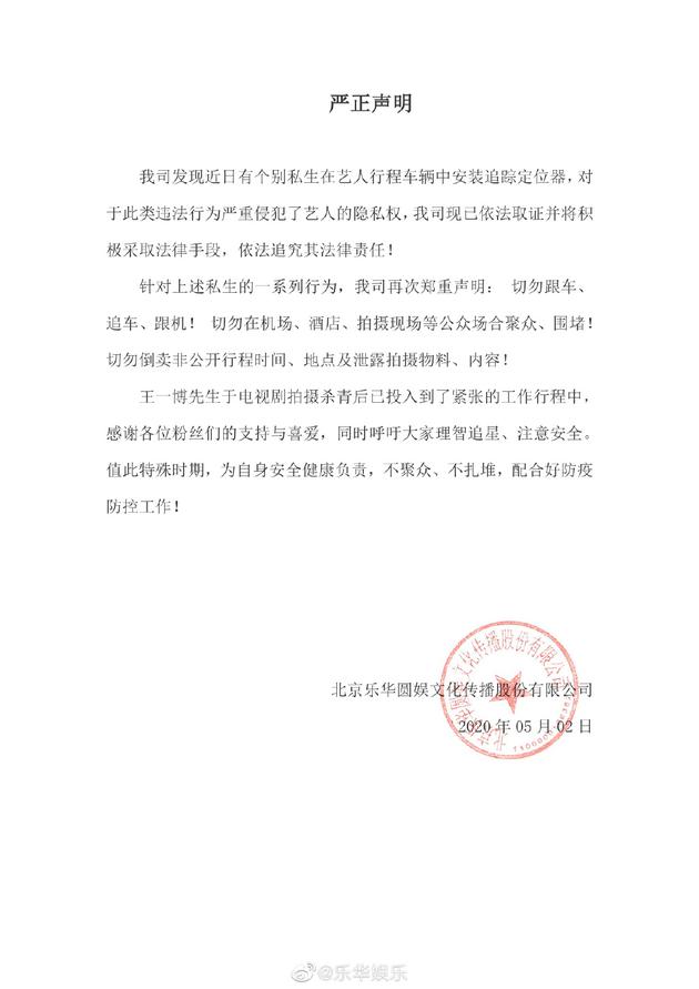 乐华娱乐声明