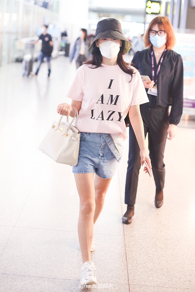 新浪娱乐讯 5月25日,张雨绮现身北京机场。她穿粉嫩T恤少女感十足,搭配牛仔短裤大秀美腿,拎包走机场笑眼弯弯女神范。