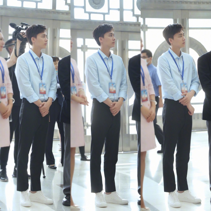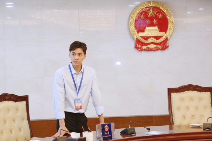 新浪娱乐讯 5月30日,工作室发布一组李易峰作为全国检察机关“法治进校园”活动形象大使出席网上检察开放日活动的现场照。照片中峰峰穿着浅蓝色衬衫带着工牌,站姿笔挺神情认真。