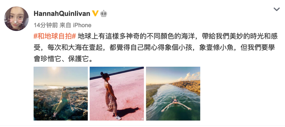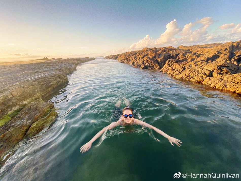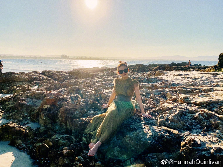 昆凌穿长裙脚踩岩石感受自然 水中游泳直呼开心得像小孩