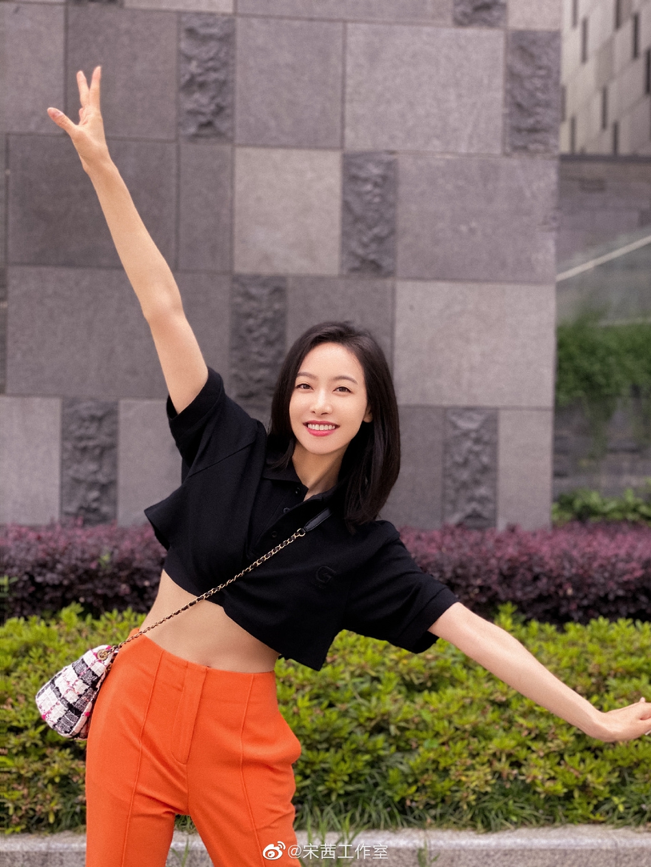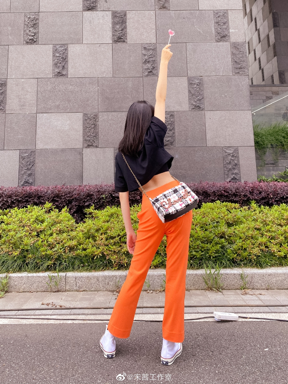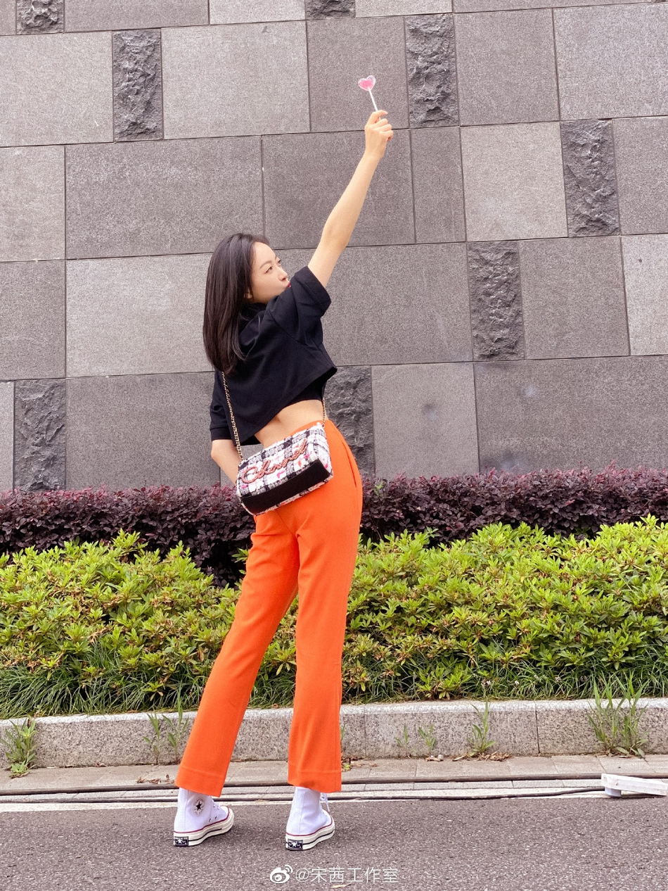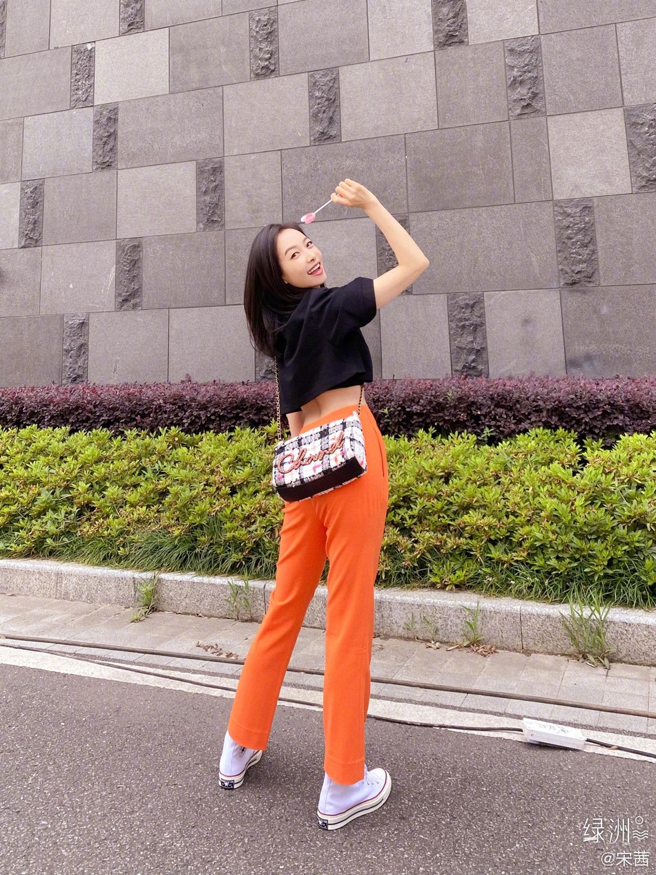 新浪娱乐讯 19日,宋茜绿洲晒照,配文:“吃棒棒糖吗~很甜的那种”。工作室也晒出同款街拍。照片中她穿着黑色短款上衣配橙色长裤,摆出各种造型,甜美可爱,露出的蚂蚁腰让人十分羡慕。