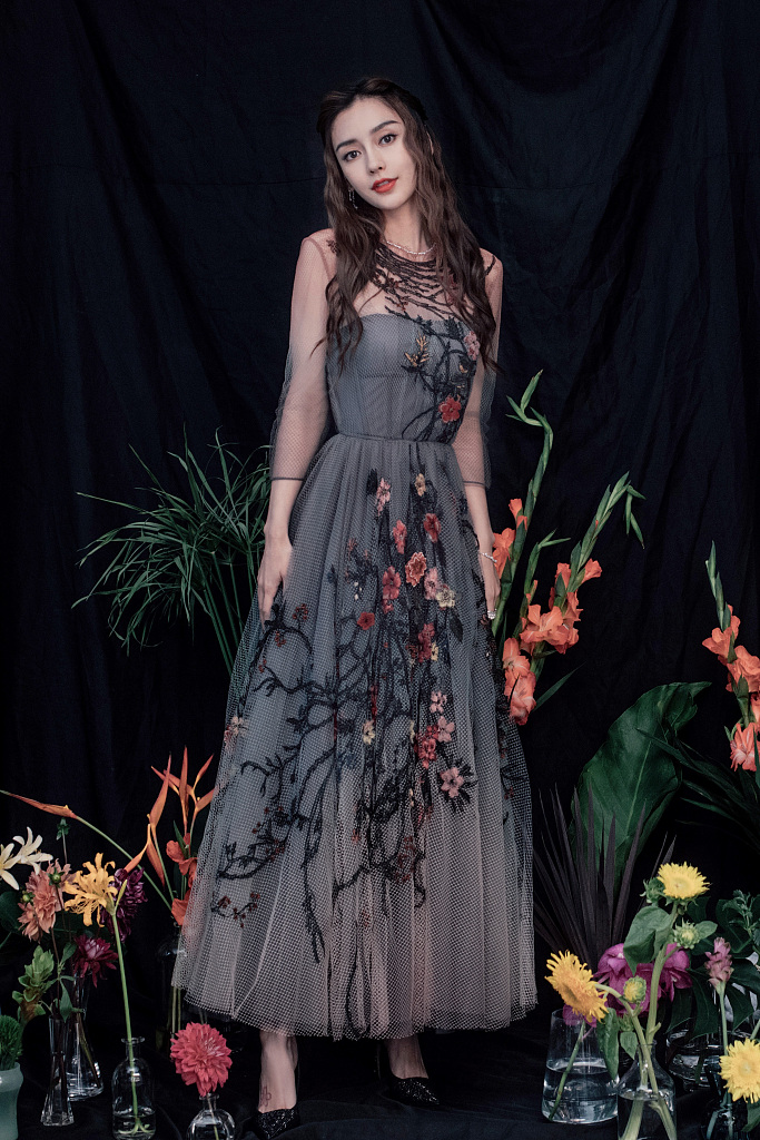 新浪娱乐讯 7月24日,上海,杨颖(Angelababy)现身某开幕酒会,并拍摄写真。她身穿鲜花藤蔓长裙,优雅灵动变小公主,繁花中温柔垂眸,美成焦点似“东方佳人”。