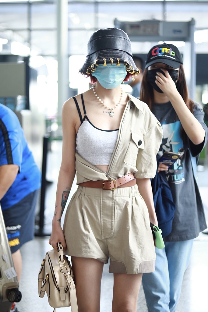 新浪娱乐讯 7月25日,上海,乃万现身机场。她连体裤不好好穿,半露香肩时尚秀身材,拎包赶路表情冷冽气场无敌。
