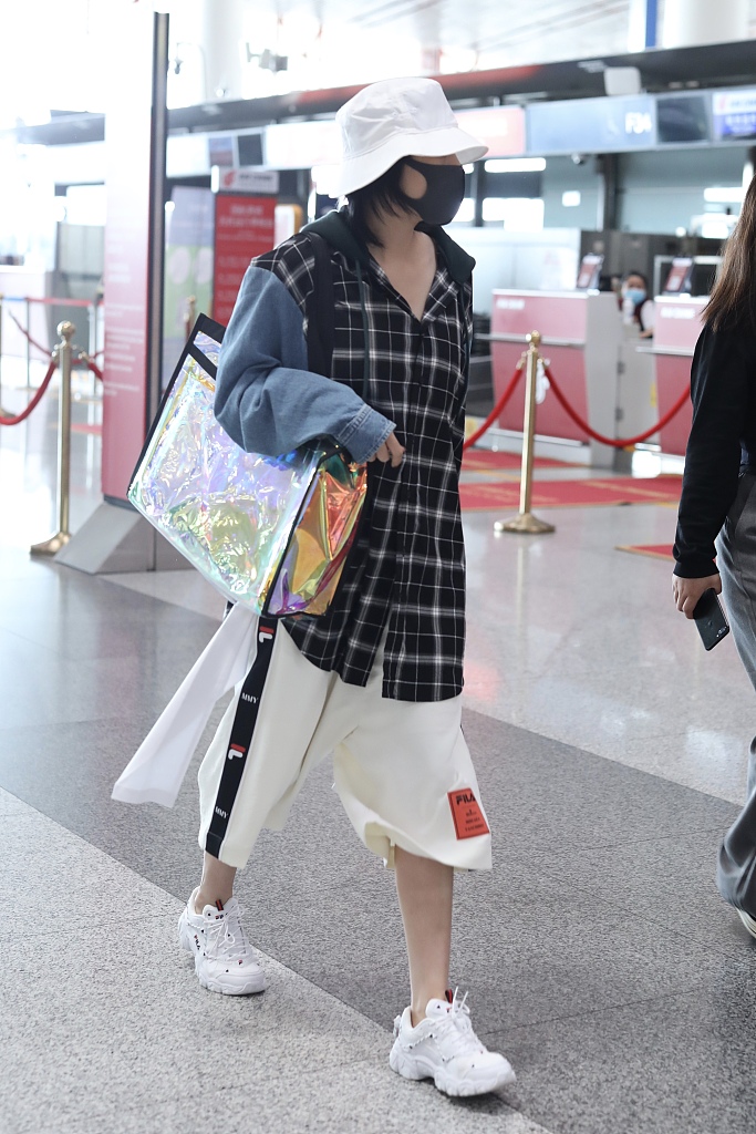 新浪娱乐讯 8月7日,北京,张馨予现身机场。她戴着渔夫帽身穿格子拼接上衣搭配运动短裤玩混搭,背亮面包包挥手打招呼十分闪耀。