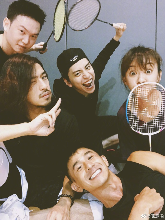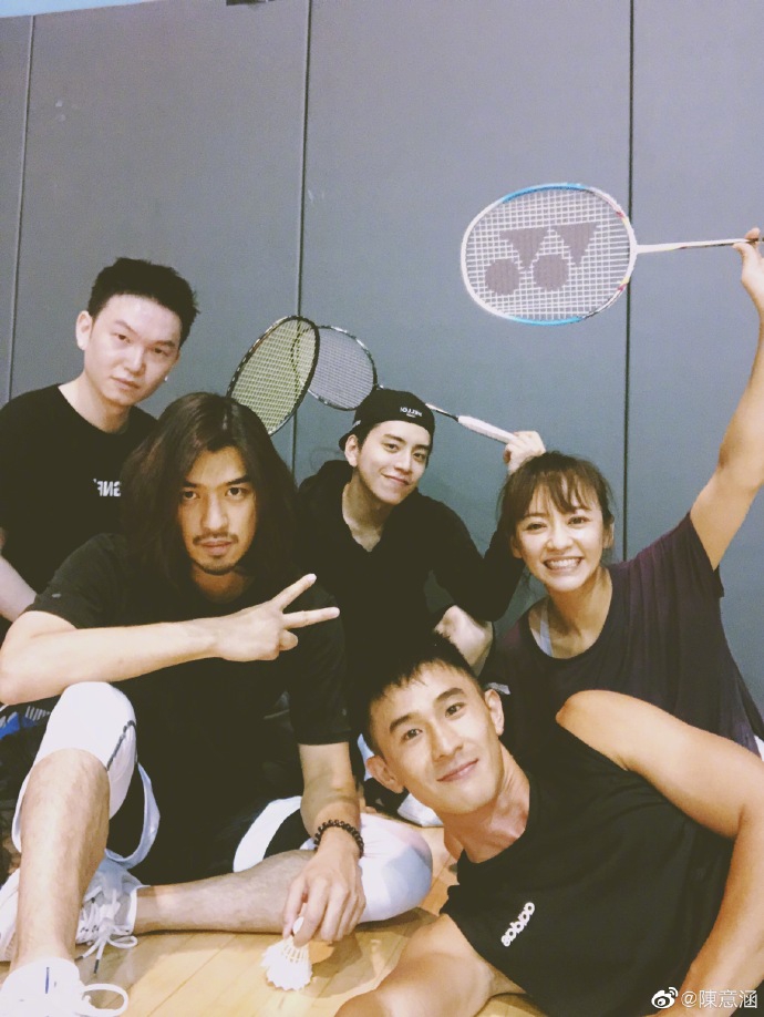 新浪娱乐讯 15日晚,陈意涵在微博晒出与陈柏霖王大陆同框照,众人在羽毛球场合照感情好。