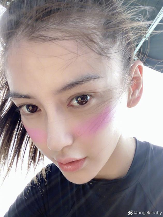 Angelababy七夕宠粉晒自拍 玫粉色腮红别致惹眼