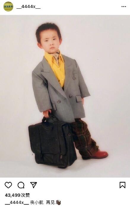 易烊千玺更新ins晒出童年照,发文“丧小航,再见”,与自己《送你一朵小红花》中的角色韦一航告别。