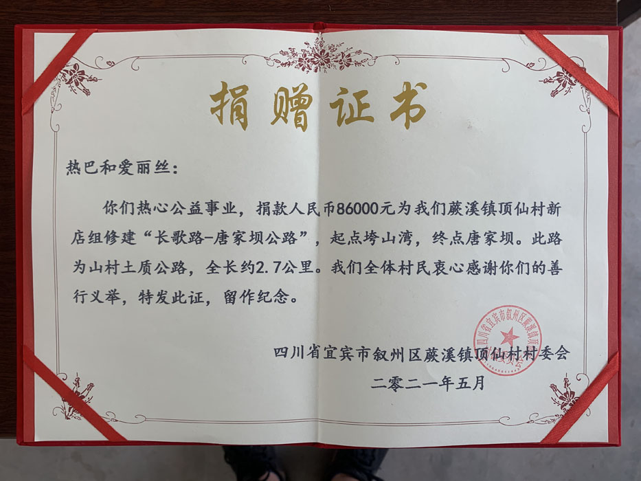 据了解,由于热巴是“孝心工程•青春伴夕阳爱心宣传大使”,所以粉丝们特地投放了6万余份以孝亲敬老为主题的公益包裹广告,号召人们关爱老龄人口。同时,他们还在四川山区修建了以热巴饰演的角色”李长歌“命名的【长歌路-唐家坝】路、为山区学生、留守儿童们举办了六一儿童节的节日宴等等。
