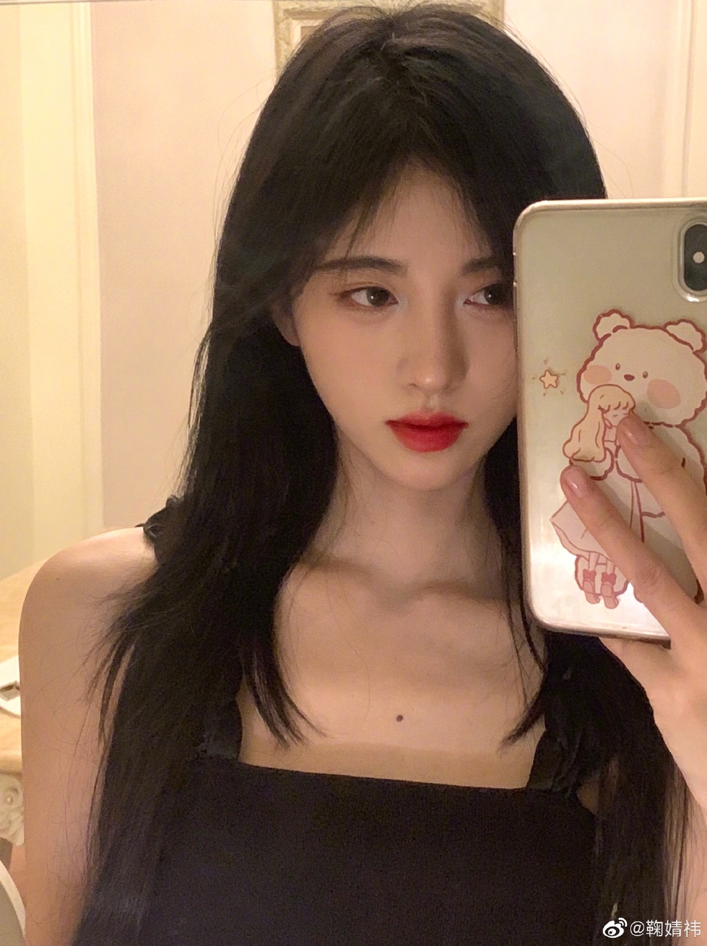 鞠婧祎晒私服照 吊带裙配马丁靴妆容精致