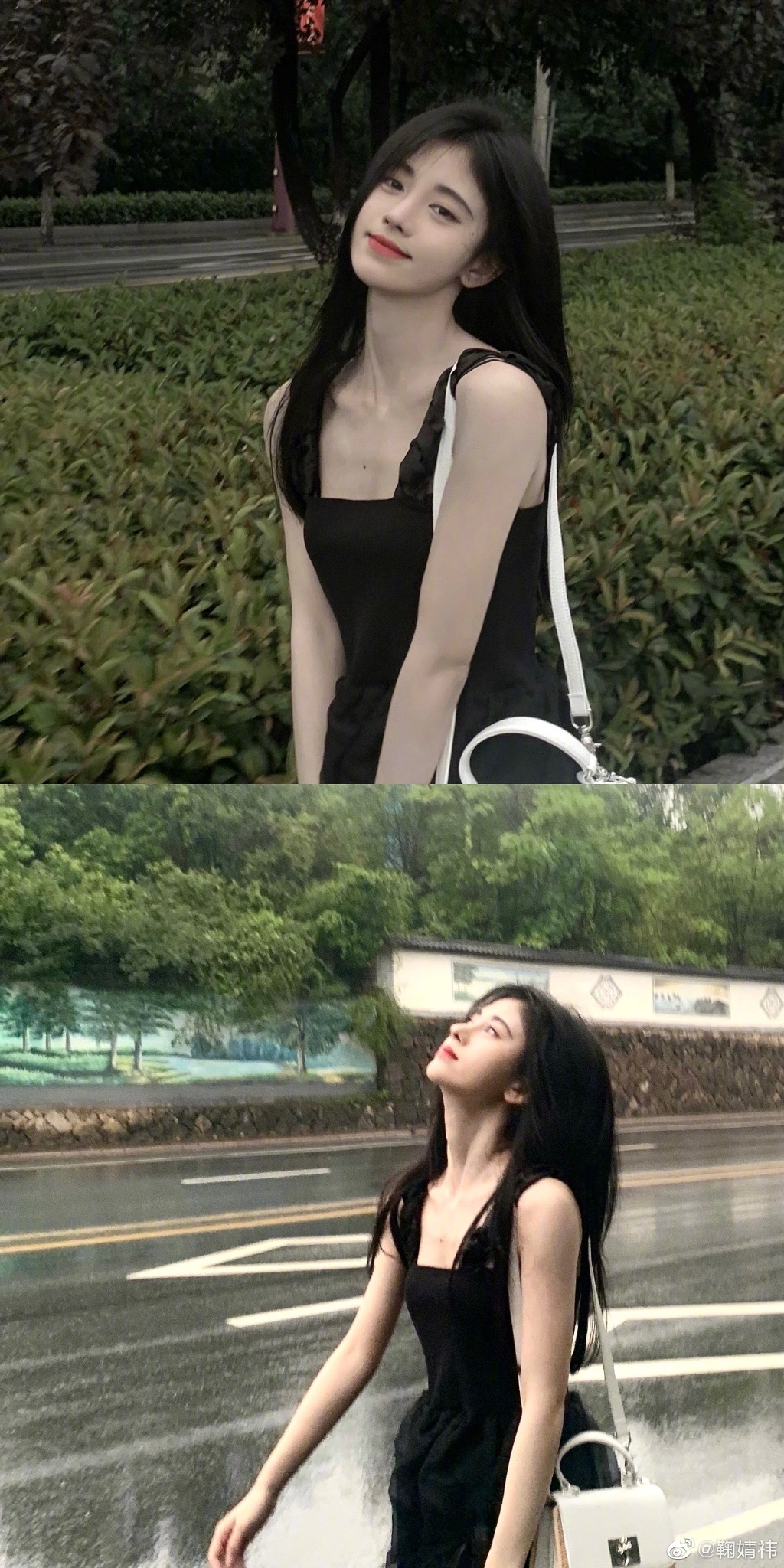 鞠婧祎晒最新私服照,黑色吊带纱裙搭配马丁靴,露出白皙纤细四肢,妆容精致可爱。