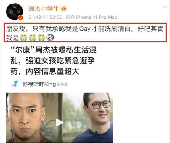 网易娱乐12月12日报道 12月11日深夜,周杰突然发文回应负面风波:“朋友说,只有承认我是Gay才能洗刷清白,好吧其实我是。”