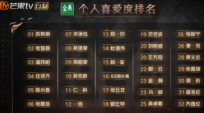 除了上面提到的这些哥哥外,张震岳从11名上升至6名,吴克群从14名上升到10名,范世琦从27名上升到19名,都算得上是比较大的浮动了。
