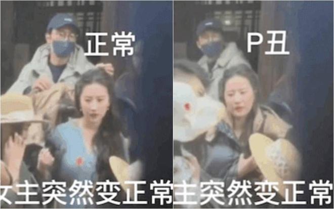 随后,有网友晒出刘亦菲面部变化的部分画面,并配文字称:“拒绝高糊故意P丑路透”。仔细看,刘亦菲的面部似乎确实发生了变化。她的脸被疑开了滤镜一样忽大忽小,被网友质疑是有人在恶意P图丑化刘亦菲。