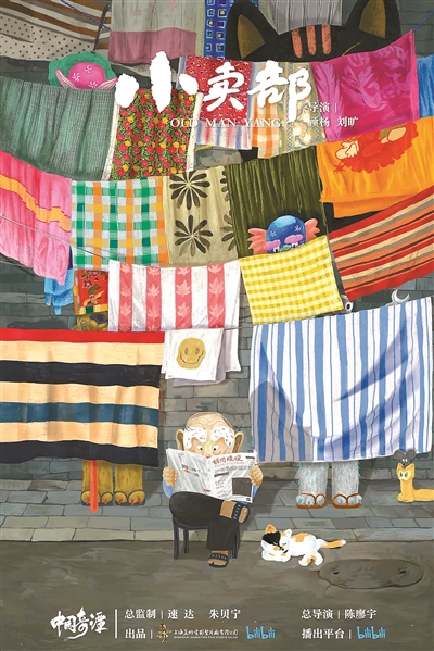 《小卖部》中还有隐藏的彩蛋,“上美影”的元素遍布小卖部的场景中,有美猴王的面具、金箍棒等,还有《黑猫警长》《魔方大厦》《大闹天宫》的经典动画海报,《大耳朵图图》的贴纸,新旧事物都在《小卖部》中共存。