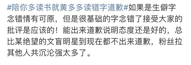 多数网友表示黄多多已经读高二了还把这些基本的日常用词读错很是离谱,并且开设的还是读书栏目,很容易会误导小孩子。建议先把易错字查一查,用心对待。