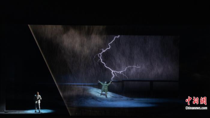 开幕的“开闸放水”一折,半透明的帷幕上映着奔腾的江水,配合咆哮怒号的音乐,给观众以扑面而来的震撼感。此前从未观看过越剧的观众蔡芳芳被这场表演深深折服:“我第一次看越剧,觉得很震撼。舞美灯光大气磅礴,音乐也特别提振士气,刚刚看哭了好几次。”