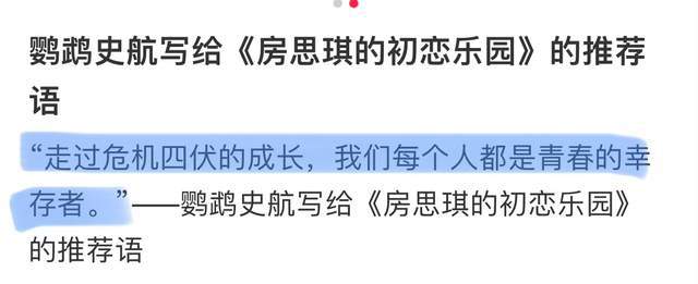 “走过危机四伏的成长,我们每个人都是青春的幸存者。”为房思琪写的这句话,如今成了史航最大的笑话。
