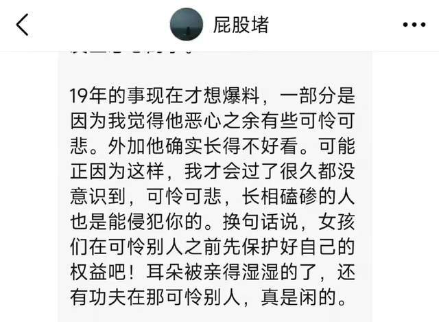 看到大家对史航长相的攻击,对他的网暴,第一个女孩表示很愧疚,因为她爆料的目的并不如此。