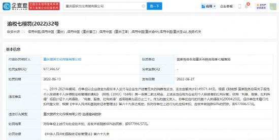 企查查APP显示,近日,重庆丽妍文化传媒有限公司工商经营状态由存续变更为注销。此前,该公司曾因违反税收管理法,被国家税务总局重庆市税务局第七稽查局罚款约97.80万元。重庆丽妍文化传媒违法事实为:2019-2021年期间,重庆丽妍文化传媒以企业资金为股东本人支付与企业生产经营无关的消费性支出,支出金额共计8149971.44元。