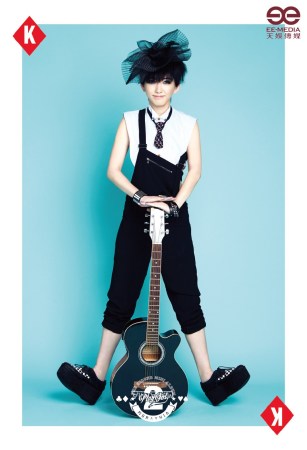 照片中,刘忻身穿黑色背带裤,调皮夸张的表情让人大呼可爱,佩戴黑色蕾丝的头饰将她中性和柔美的气质完美融合在一起,更凸显了这次“双面刘忻”的主题。镜头下,刘忻偶尔调皮的举起皮鞋、扛着吉他亦或化身定格的木偶,更是自然表达着夸张的大笑或耍酷的坏笑,洒脱随性的表现,让摄影老师不禁赞叹连连,他说,“很多艺人可能会因为顾及形象而不敢去表达,但是刘忻不一样,她很敢去表达自己,所以将镜头下的喜怒哀乐都呈现的无比真实。”而刘忻也更像是在用表情和动作跟大家交流,让人看到她俏皮可爱的一面。本次服装造型也采用巧妙设计,正面的视觉效果呈现出的是她帅气俏皮的一面,白色的无袖衬衫搭配连体背带裤,而从侧面看去,衣服却是采用镂空的设计,可爱中又带有微微的性感。