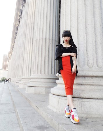 作为华语娱乐圈90后代表,吴莫愁在秀场展现出了青春独有的释放与张扬,以黑色性感外套+红色紧身短裙装扮亮相,她所穿的撞色厚底潮鞋则是品牌设计师山本耀司的得意之作,此次更是特别指定吴莫愁独享这唯一一双。