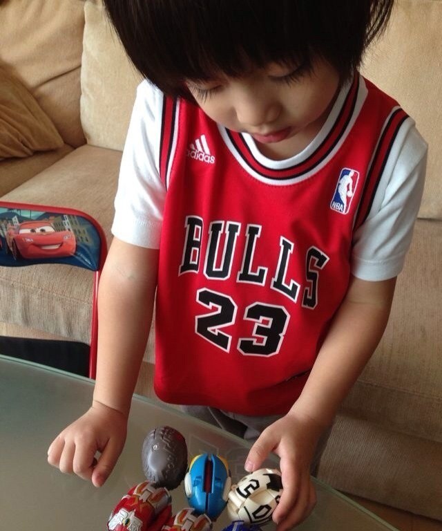 近日,“不老男神"林志颖再次在微博上更新了爱子小小志(Kimi)的萌照,这一次小小志依然延续可爱路线,他身穿着乔丹公牛时期的红色主场球衣,手上玩着林志颖特地为他买的奥特蛋。