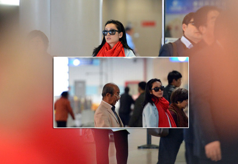 秦海璐怀胎六月挺大肚 戴红围巾墨镜回家