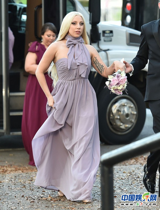 中国娱乐网讯:当地时间2015年3月20日,美国新奥尔良,Lady Gaga为好基友大婚当伴娘,眼神放光虔诚送上祝福恨嫁心切,硕大订婚钻戒极其刺眼。