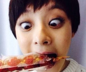 孙俪晒素颜搞怪自拍照 与糖葫芦比眼大